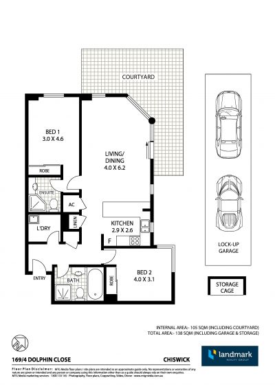 * Secure tandem garage, separate storage cage, lift access, security intercom