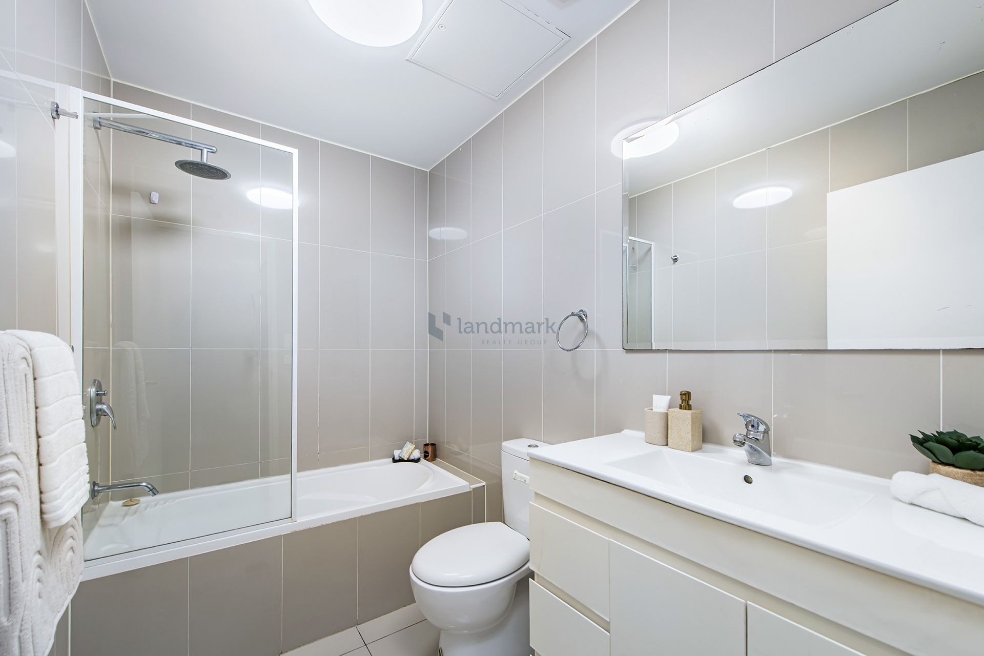 * Modern tiled bathroom, internal laundry with dryer