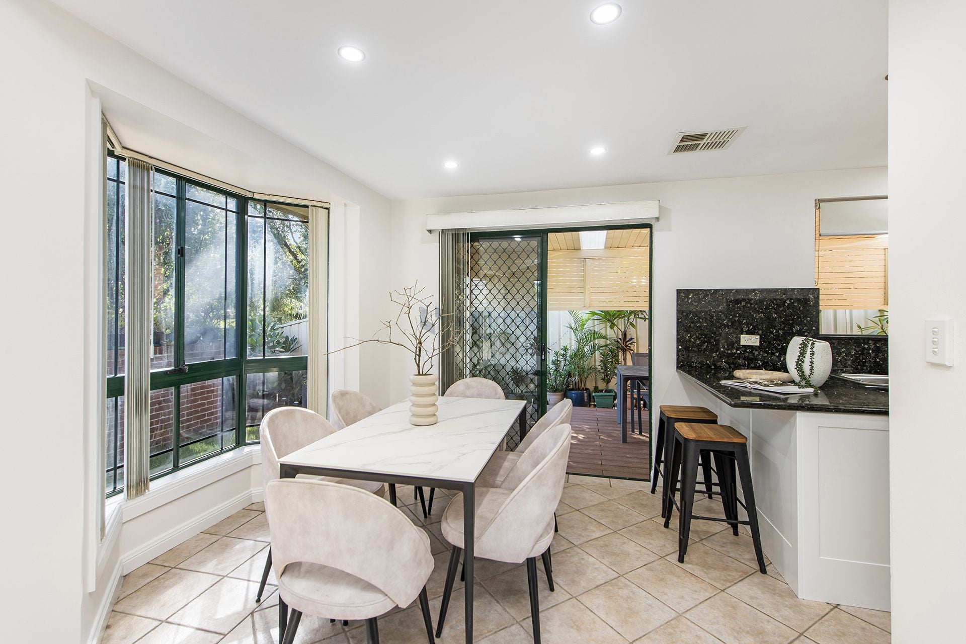 * Sun-filled dining space flows to private alfresco setting